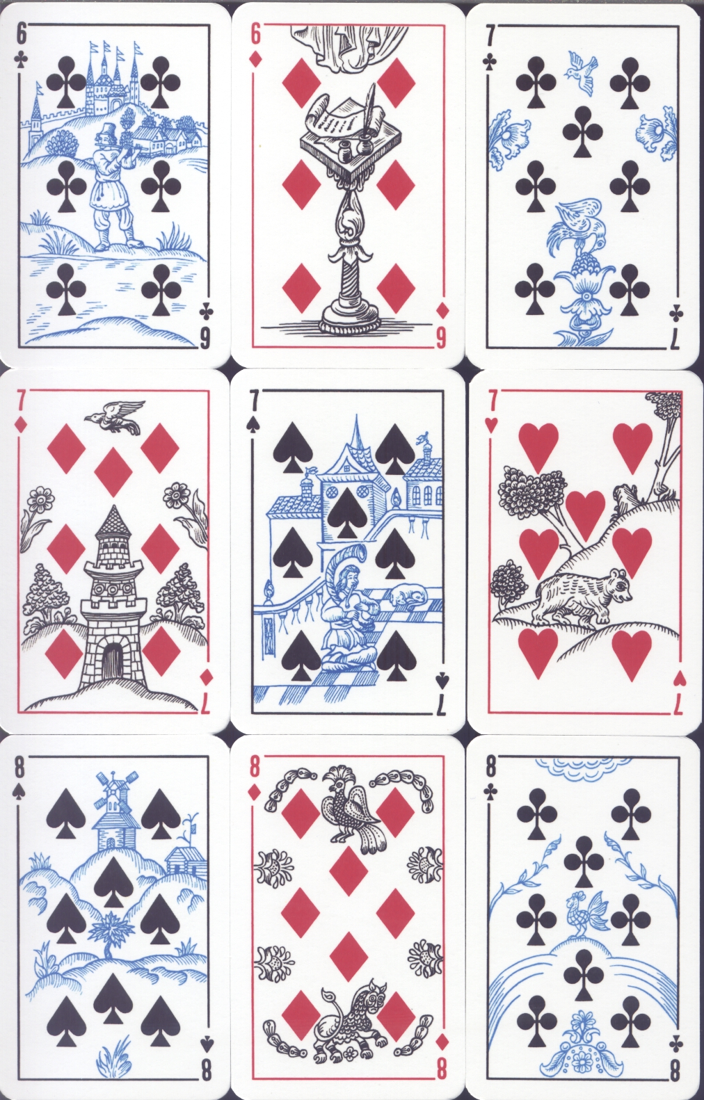 Художник Виктор Михайлович Свешников создал серию рисунков, которыестали основой для разных игральных карт, например «Лубочных». Издавалась на КЦП с 1981 года. Первоначально задумывалась колода из 54 карт, однако в продажу поступила колода из 36. Хотя в 1982 году и была выпущена полная колода в 54 карты, но она была издана маленьким тиражом и в настоящее время встречается очень редко.