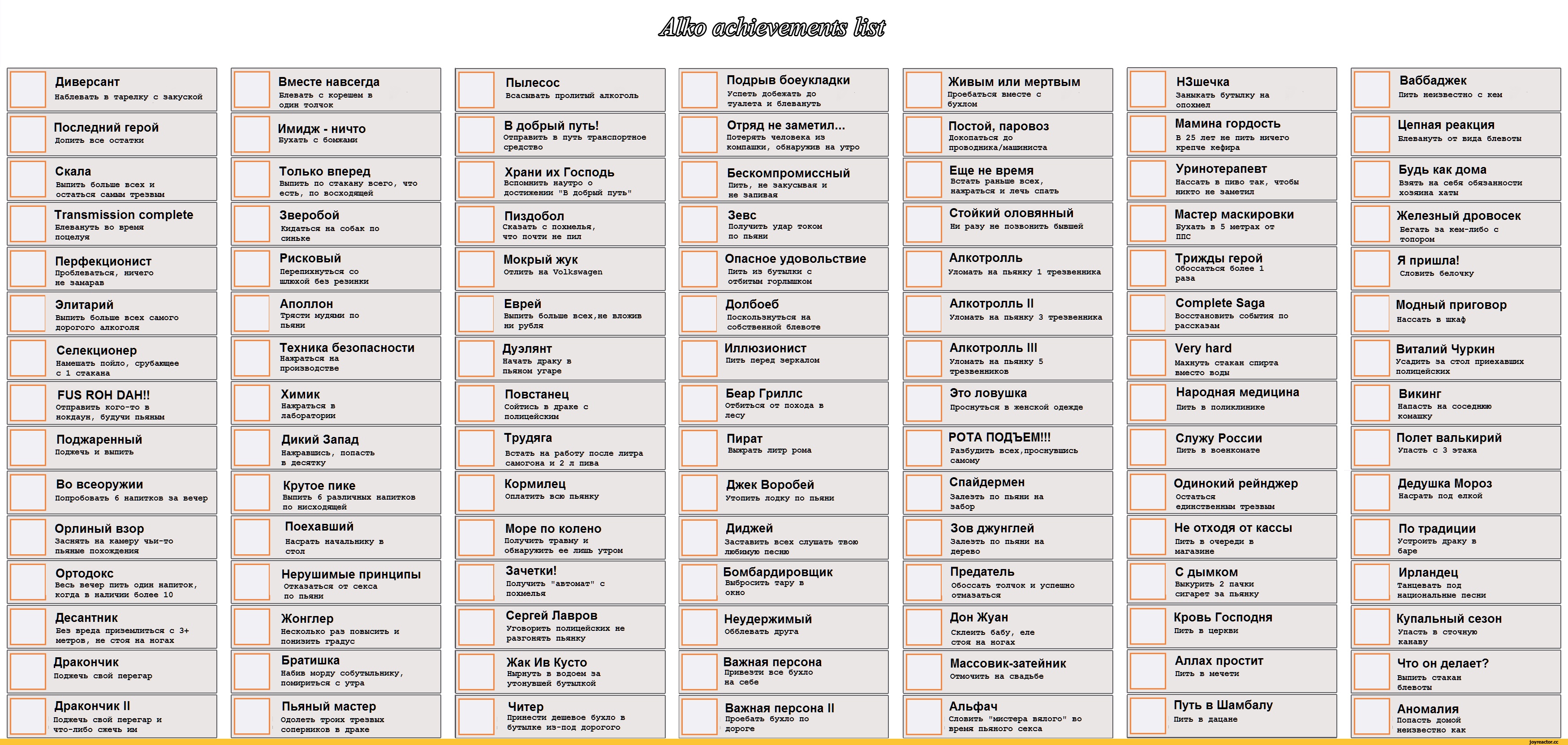 Ачивки (достижения) в алкоголе. Печатаем и отмечаем =))