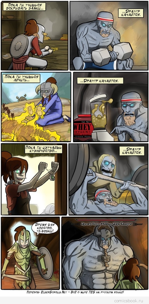 1. Расчет идет не от количества ударов, а от количества нанесенного урона. По этому лучше всего прокачивать оружием с большим уроном, и на врагах с большим количеством хп — тролли, гиганты, мамонты, и т.д. Честная прокачка.