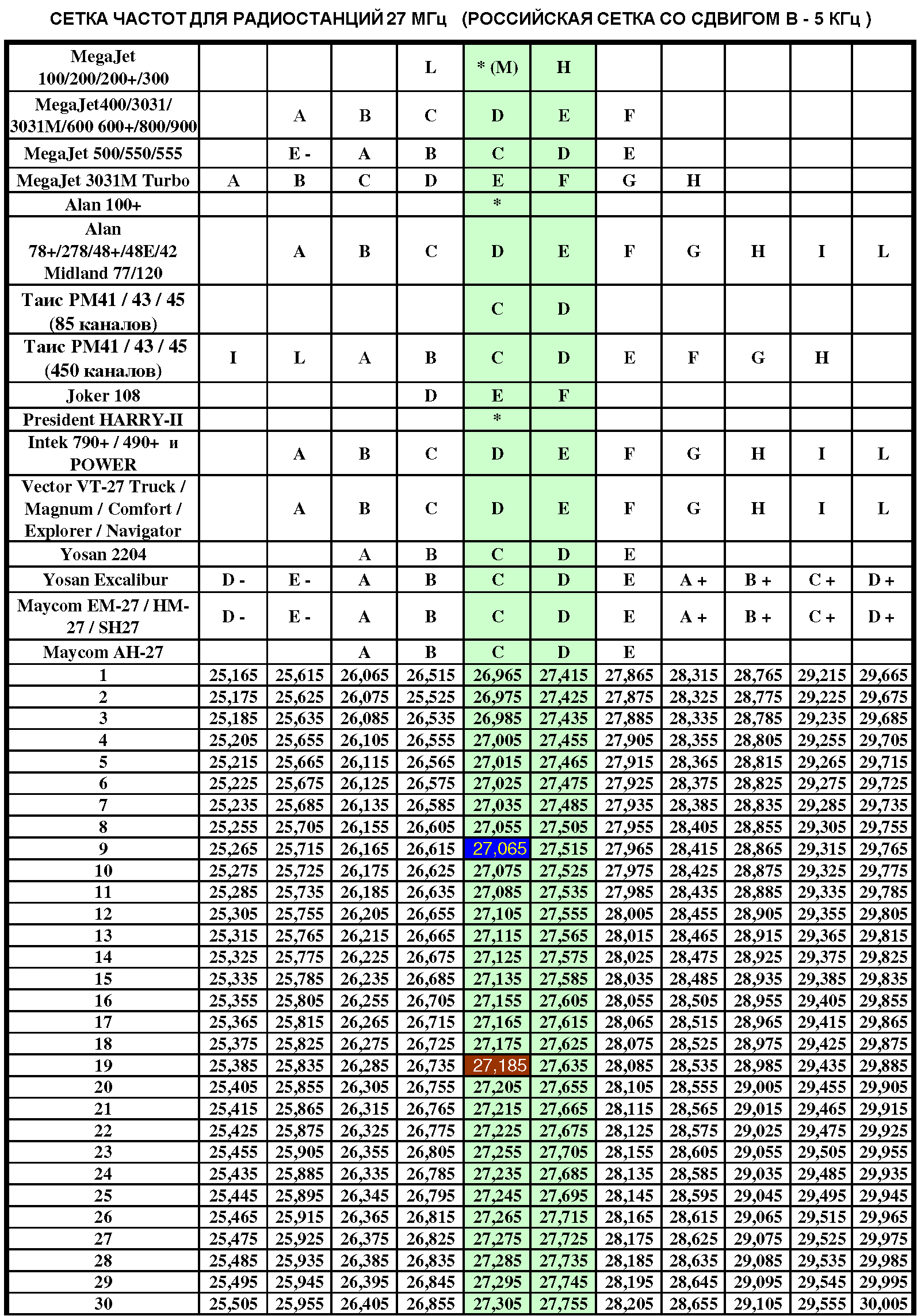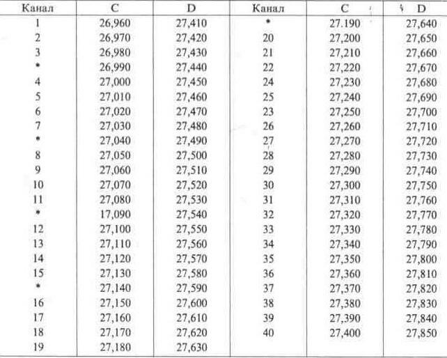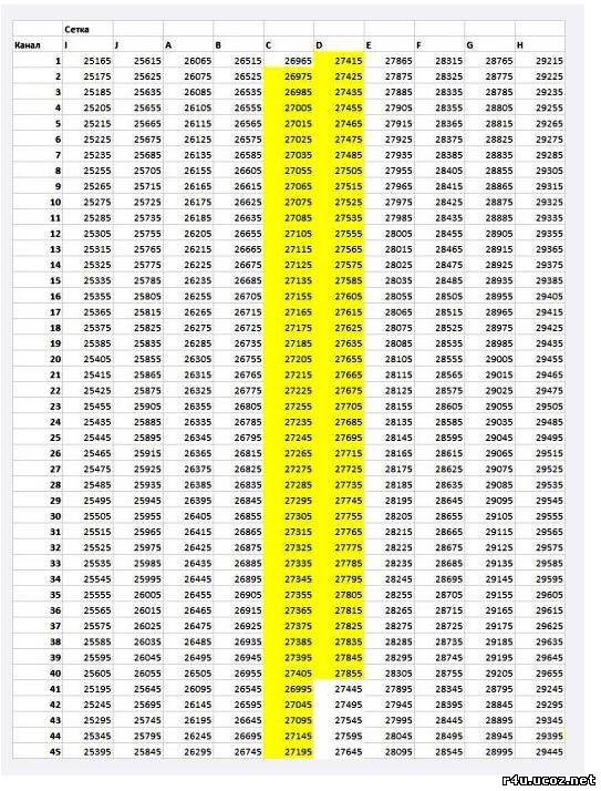 Таблица частот для 8ми канальных раций: