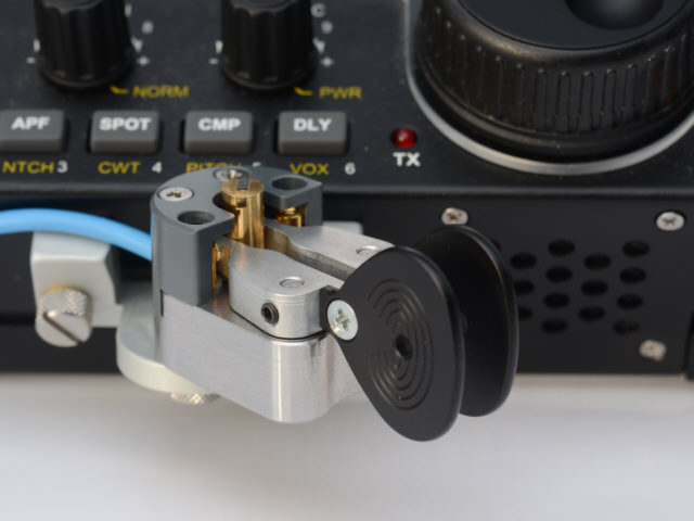 Только чуть поменяю форму передней части ключа, перенесу на фанерное основание (это для теста было) и подведу контакты. Ну и уголок переверну внутрь.