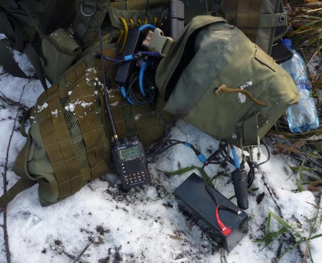 Чувак суёт в подсумок аккум от ИБП, он как раз 12 вольт. К нему переходник под прикуриватель. В прикуриватель - всё, что угодно. Вот станция