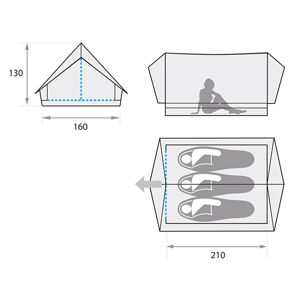 Площадь - 2 стены по 2.08м + 2 стены по 2.73м + пол и потолок по 3.36м = 16.34 квадратных метра ткани, не забываем про запас и "неделимость" конструкции тента (резать ничего не будем).