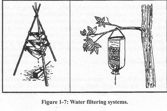 Пришпандоривается куда-нибудь к дереву в такой последовательности: Водозаборник (при чём вода должна забираться из середины, что бы плавучие и тонущие "фракции" оставались), магнитный фильтр (нужен? реально ли железо поймать?), Фильтр грубой очистки (типа поролона), фильтр тонкой очистки (полимерный), угольный фильтр (вещь полезная, но с него может течь чёрная гадость), накопитель с краном.