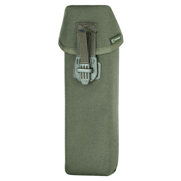 Сидит как влитой. Крой подсумка вмещает основную "трубу" внутри, а утолщение оставляет открытым. Липучка застёгивается тютелька в тютельку, как будто под этот фонарь и делали!