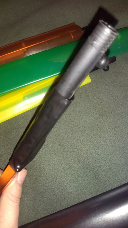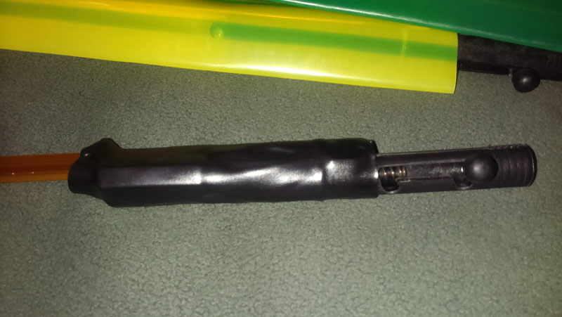 Ещё одна проблема - цвет гильзы "сигнала". Решено было затягиванием в термоусадку чёрного цвета D 15.8/8. Натягивается туго, но немного времени - и всё получится!