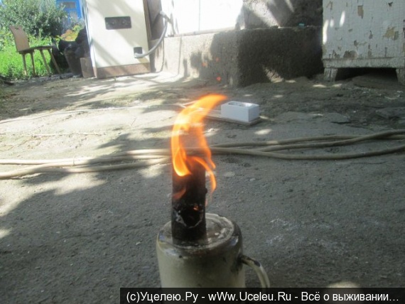 Можно поджечь и испытать. Поджигается это все зажигалкой, наплавленное в нижнее отверстие.