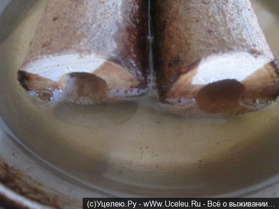 А после кидаем наши полешки на н-ное время для их пропитки. Пропитываются в среднем минут 15. Внимание! Полешки должны быть идеально сухие а то будет хлопать и брызгать во все стороны расплавленный парафин.