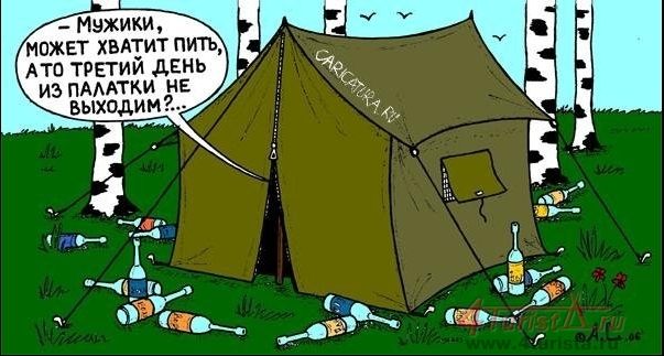 моей палатки. Как он не зацепил ни одну растяжку от палаток остается загадкой. Но до самой палатки он меня не донес. В метрах 2 упал таки. Я поднимаю голову, вижу палатку свою и по-пластунски ползу к ней. Дополз. Залез. Так стало тепло и уютно. Уснул. Через какое то время просыпаюсь, и понимаю что уже утро. Птички поют и светло уже. Пробую встать. Не могу. Кто-то на мне лежит. Пихаюсь и говорю - дайте встать!