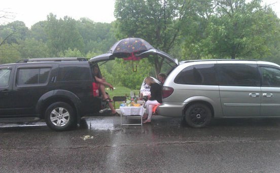 Через пару часов вываливаемся из поезда. Ебашит дождь. Зонтиков ни у кого нет.