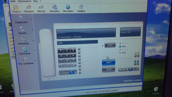 Далее необходимо настроить общение с факсом (выход в город, код города, тон/импульс и пр) от балды, а в самой программе жать передать --> выбор файла --> без набора номера --> на факсе нажать "монитор", или снять трубку, и нажать "старт". Обратно - почти то же самое, но начинаем с факса, а в программе снимаем трубку, и нажимаем "старт".