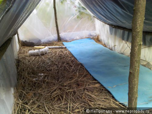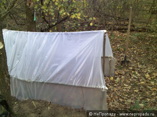 Простой "домик" со "стенами", из жердей и плёнки. Непропадухи :lol: