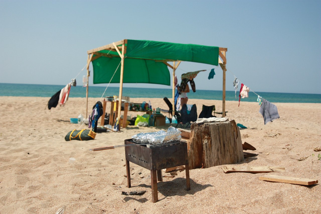 Так же можно тент сверху продолжить с наветренной стороны. Это даст сухоту сверху, и отсутствие ветроты сбоку.